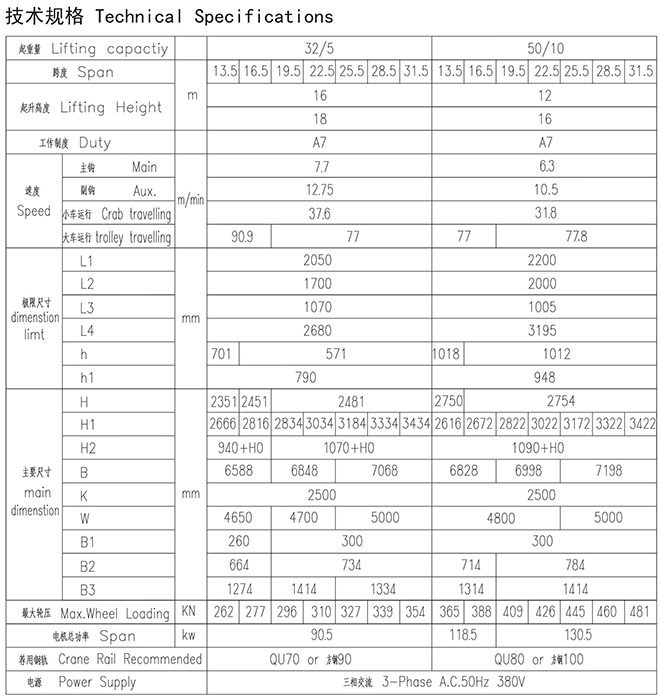 QDY型32、5~50、10t冶金起重机